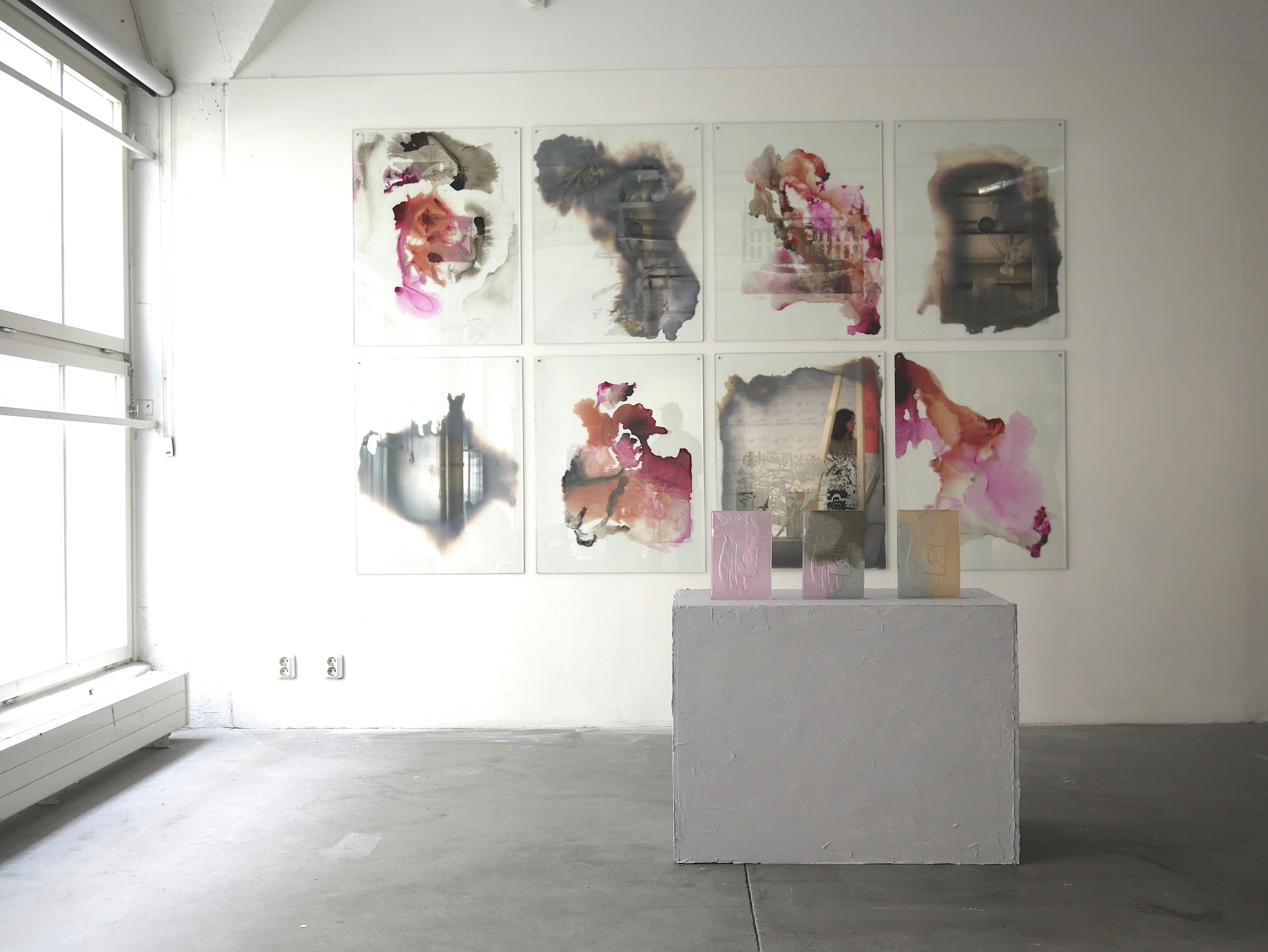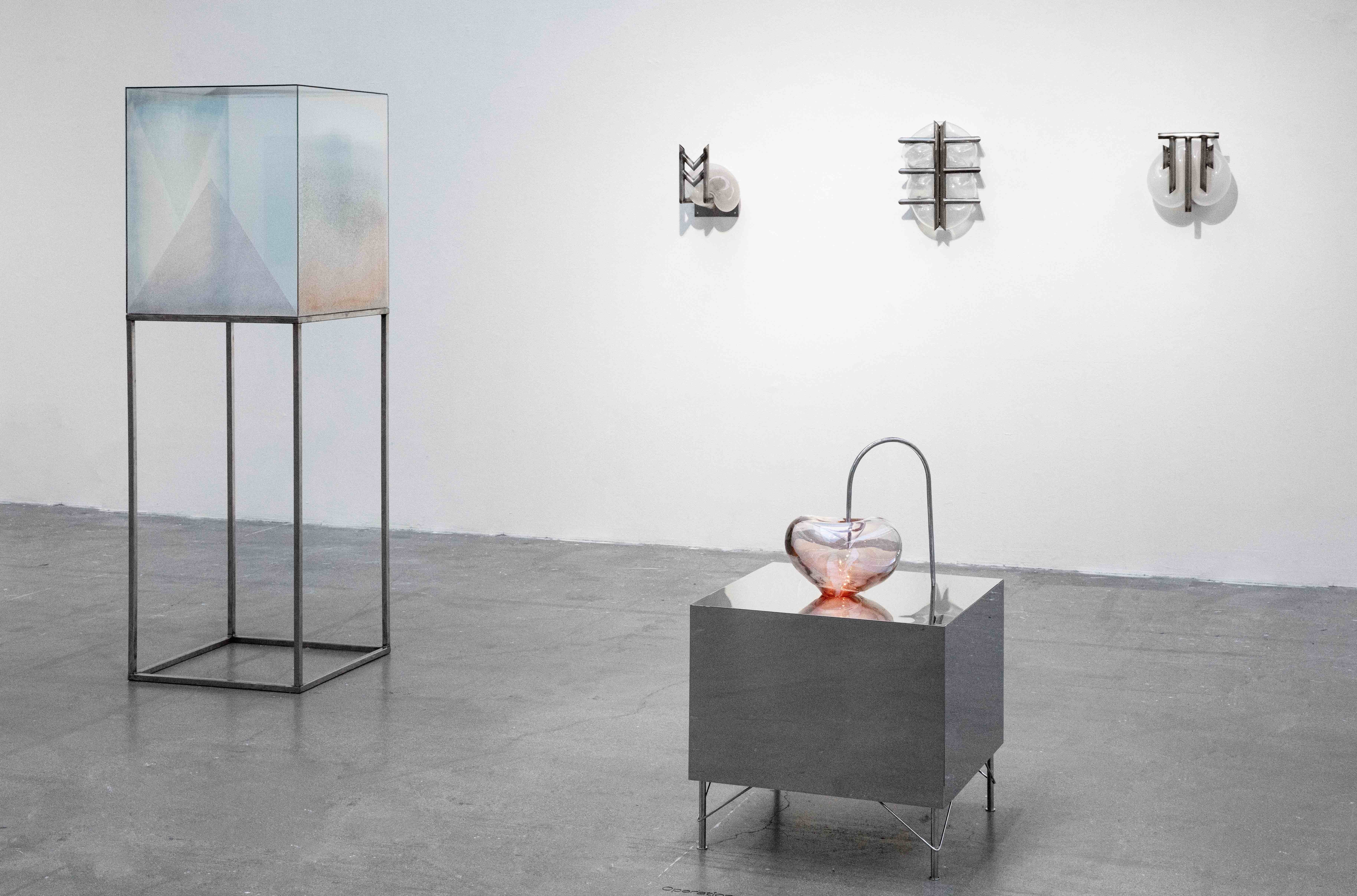 Vitrinen (2025) Planglas, metall, fusing · Photo: Jessica Azizeh