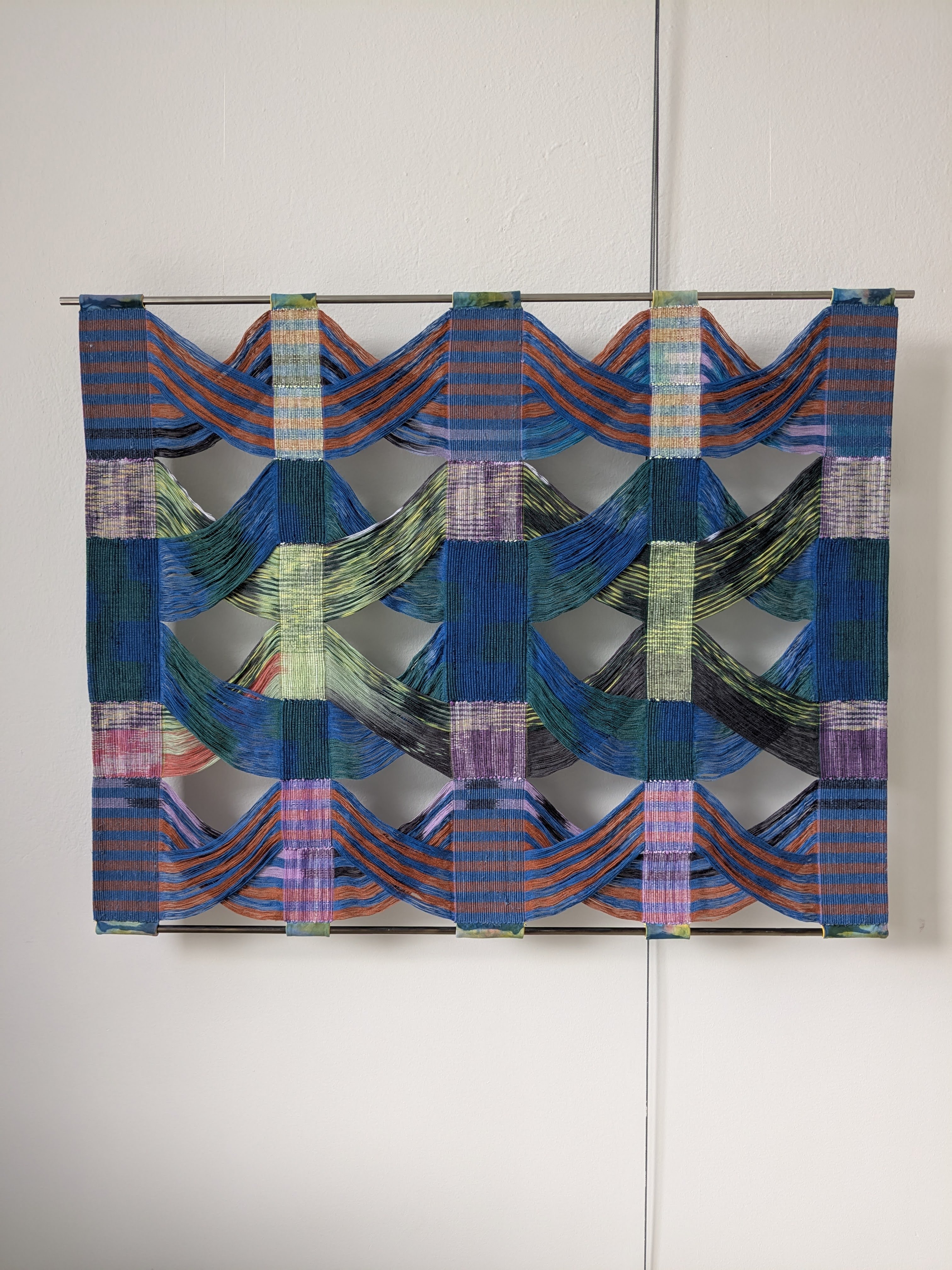 Mitt konstnärskap har sin grund i de textila teknikerna och dess metodiska sätt att långsamt växa fram. Med broderi och handvävning låter jag trådar och stygn bygga upp bilder och mönster. Jag dras till det koloristiska och abstrakta men blandar även in det figurativa och berättande i mitt formspråk. Jag talar med färg och förklarar mig genom stygn och trådar. Slump och intention blandas med hantverkets precision.