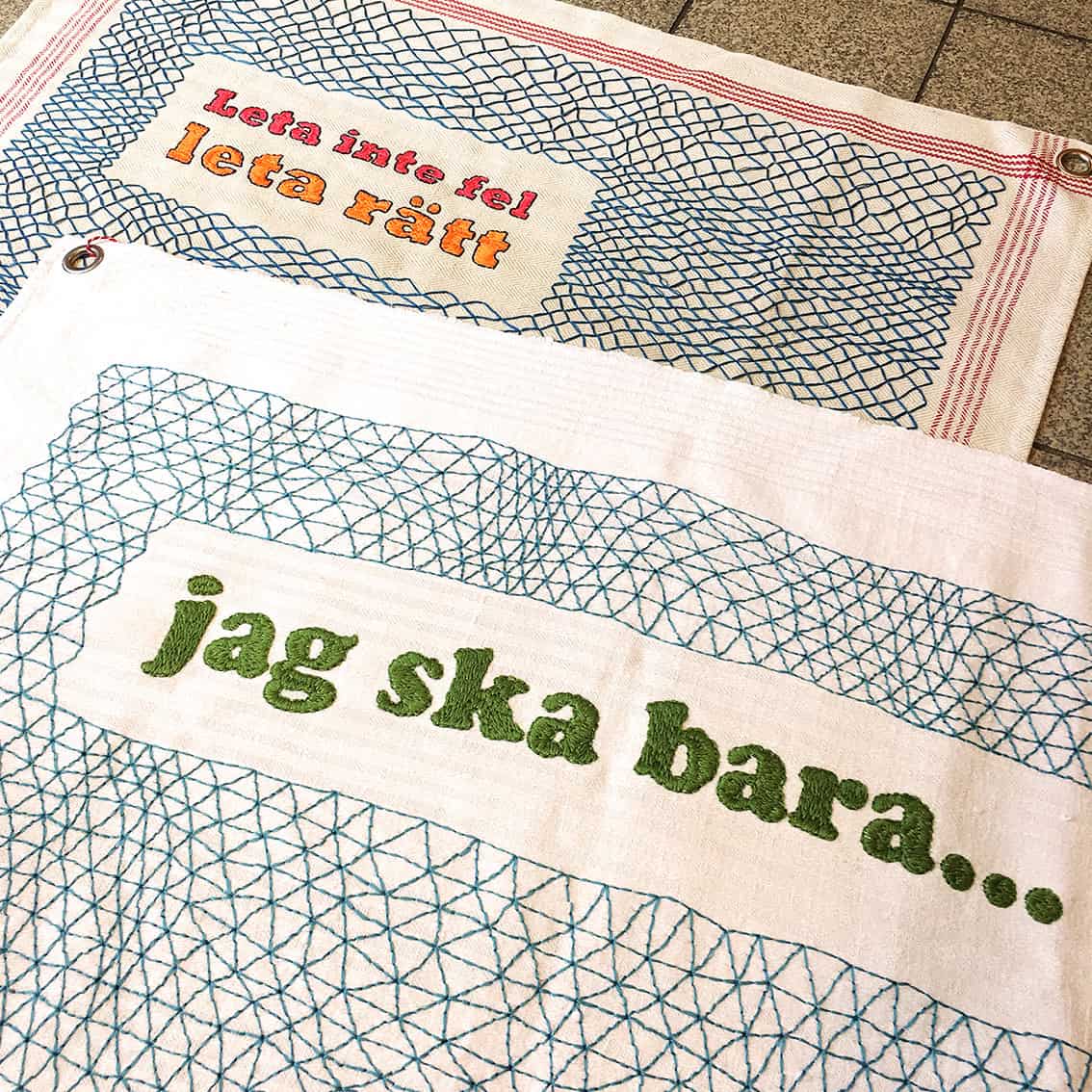 Jag är textildesigner och konsthantverkare verksam i Småland. Jag arbetar med unika verk och småskalig produktion med inspiration från vardagslivet. I mina verk kommenterar jag samtiden på olika sätt. Hållbarhetsaspekter har en central roll i mitt arbete. Verken innehåller ofta grafiska mönster och text, och är gjorda i tekniker som screentryck, stämpeltryck, broderi, mattflätning och virkning. Jag ställer ut mina verk regelbundet och leder även workshops.