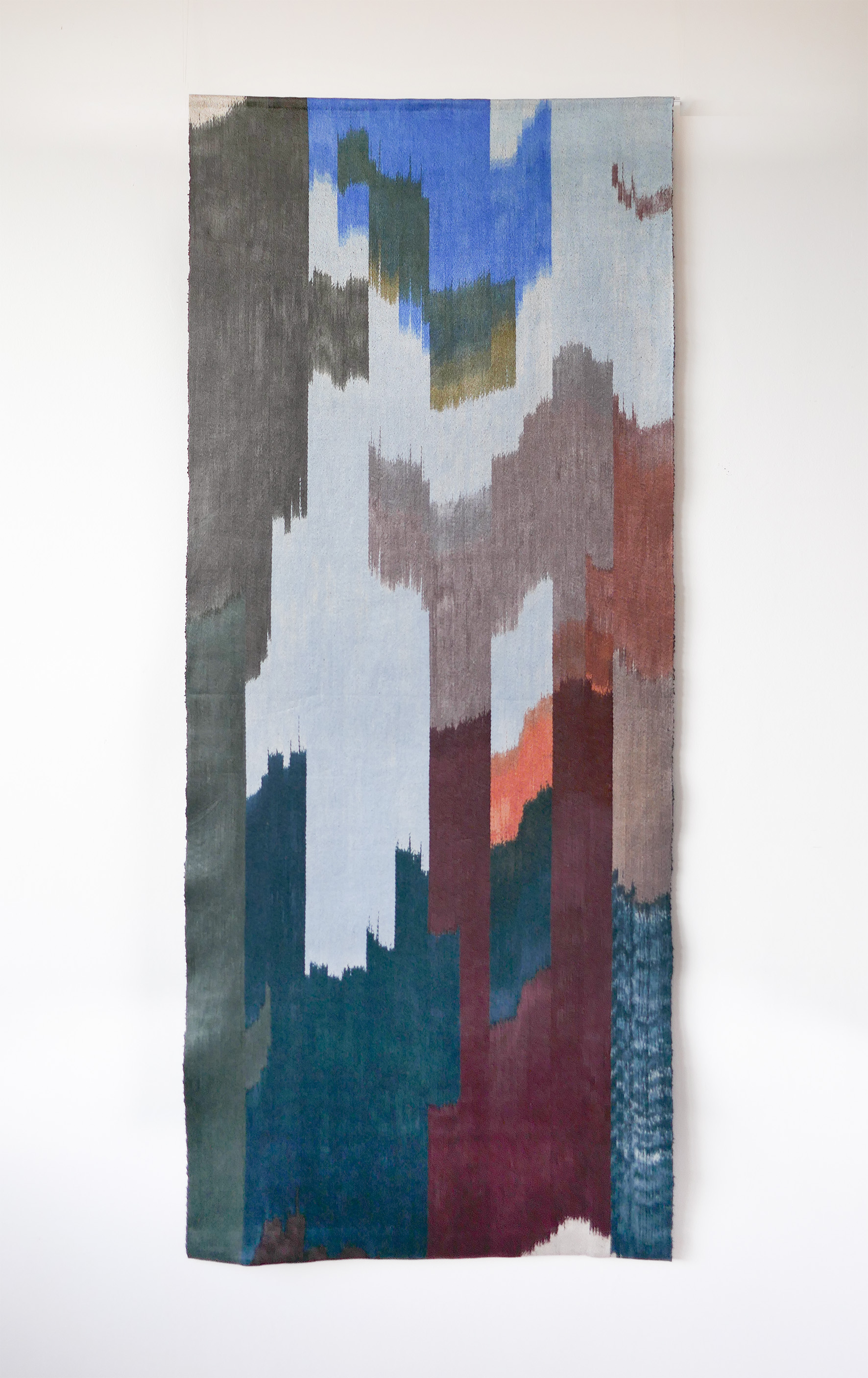 Jag är textil konsthantverkare som främst arbetar med ikat som metod och idé. Genom teknikens materiella uttryck och konceptuella ambitioner utforskar jag både inneboende kvaliteter och större teman om rörelse, rumslighet och precision. Förutom ett gesällbrev i konstvävning, har jag en examen från Handarbetets Vänner och en master i arkitektur från Chalmers Tekniska Högskola. Jag arbetar även med nyproduktion av kyrkotextil och grafisk formgivning.